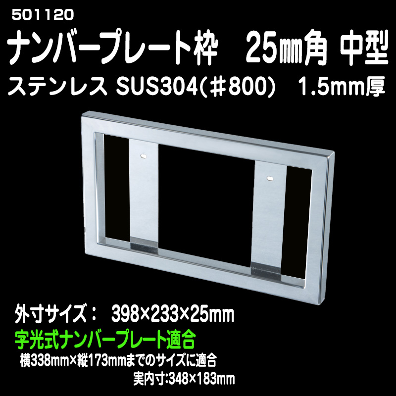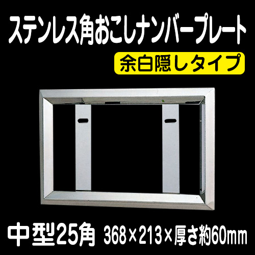 ステンレス角おこしナンバー枠 中型25角 余白隠しタイプ