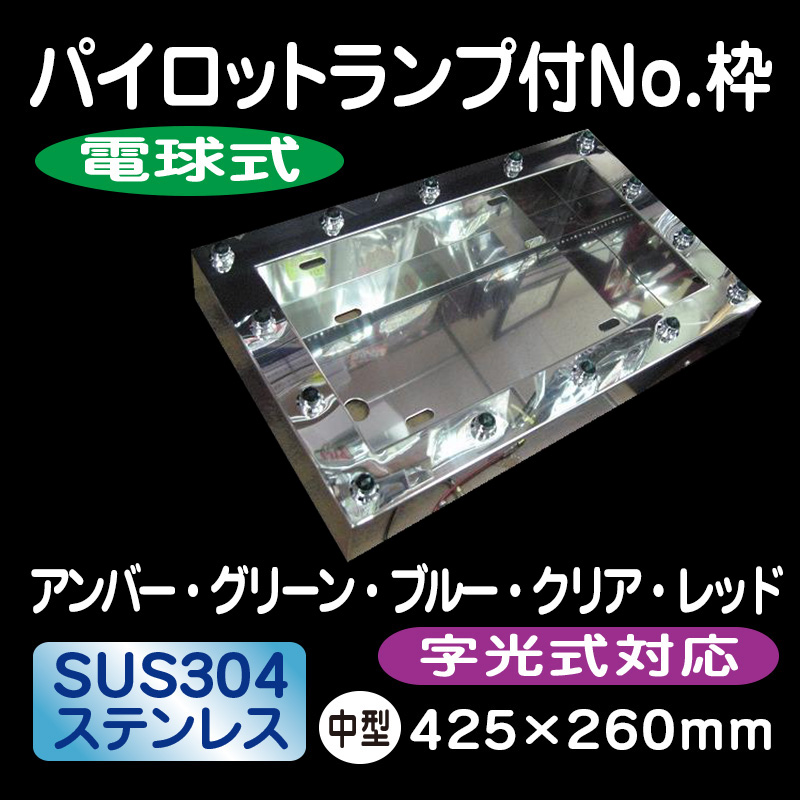 LEDステンレスパイロットランプ付ナンバー枠 中型 全5色(24V専用) 自光式ナンバー対応