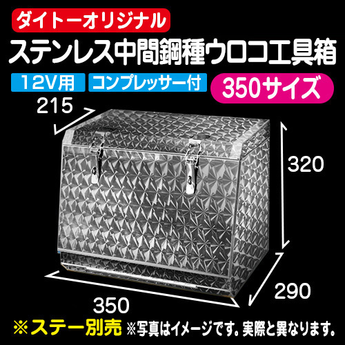 <絶賛販売中!>ダイトーオリジナル [コンプレッサータンク付(12V)]ステンレス中間鋼種ウロコ工具箱 350サイズ(B)サイズ(ステー別売)