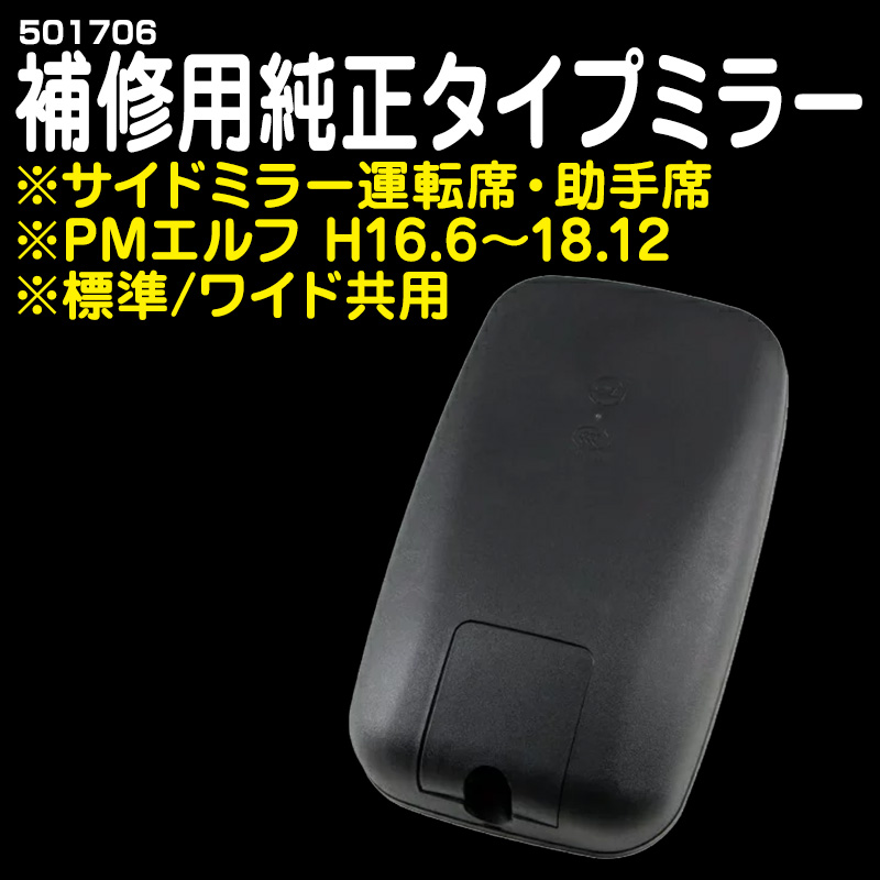サイドミラー 運転席・助手席用PMエルフH16.6〜18.12 (標準/ワイド共用) #501706