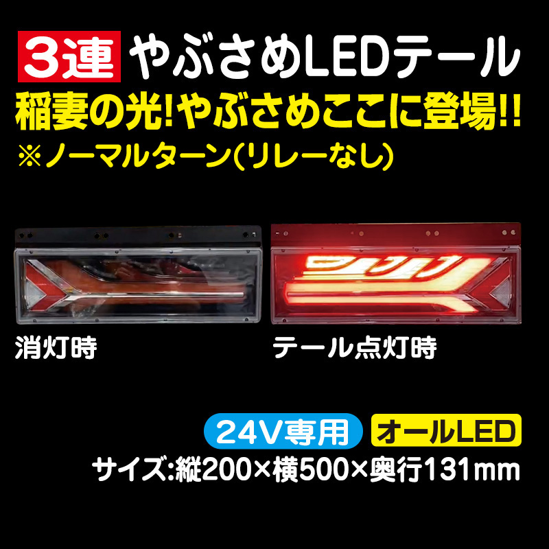 <3連>やぶさめLEDテール(24V専用) ノーマルターン(リレーなし) L/Rセット ※片側購入可