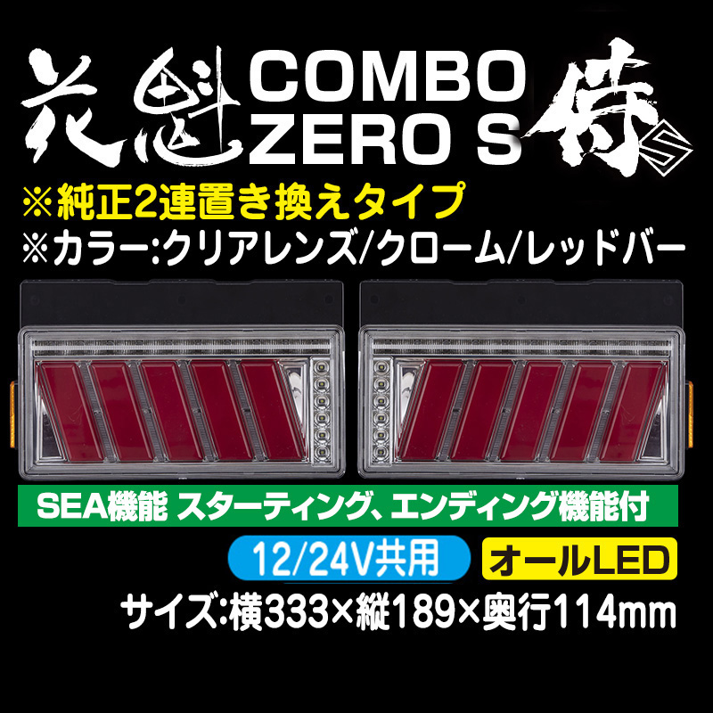 花魁CONBO 零s -ZERO S - クリアレンズ/クローム/レッドバー シーケンシャルリレー付 24V専用 L/Rセット(ウインカー抵抗器内蔵) ※片側購入可