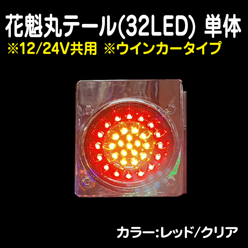 LED花魁丸テール(32LED) 単体 12/24V共用 レッド/クリア(ウインカータイプ) OWRC-M1