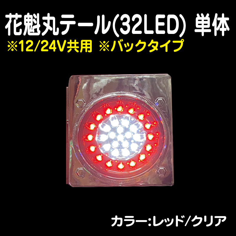 LED花魁丸テール(32LED) 単体 12/24V共用 レッド/クリア(バックランプタイプ) OBRC-M1