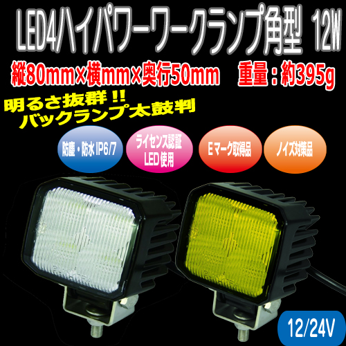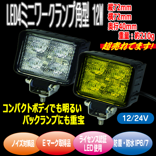 LED4 ミニワークランプ・バックランプ角型 12W (12V/24V共通 クリア