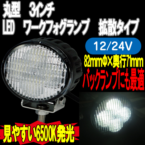 丸型3インチLEDワークランプ 丸型 拡散タイプ(12V/24V共用)