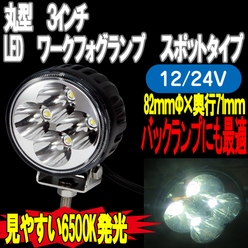 丸型3インチLEDワークランプ 丸型 スポットタイプ(12V/24V共用)