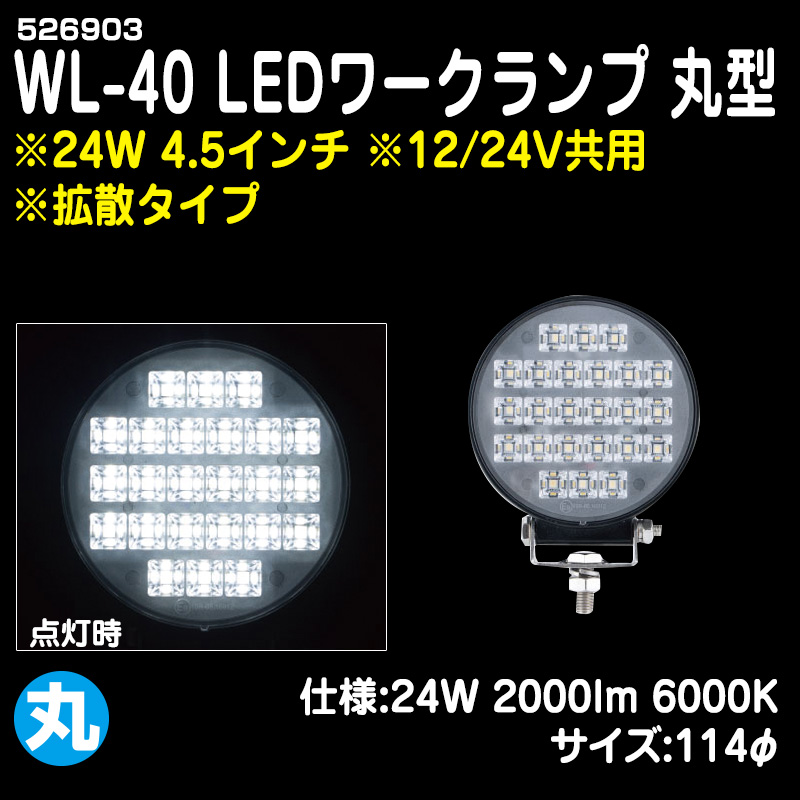 WL-40 LEDワークランプ 丸型 24W 4.5インチ(12V/24V共用)