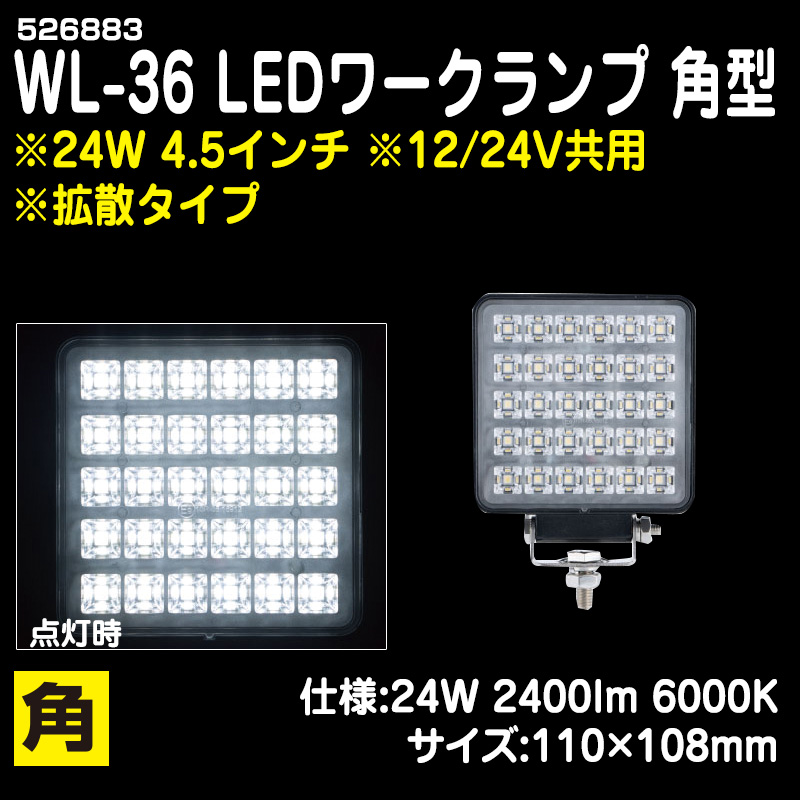 WL-36 LEDワークランプ 角型 24W 4.5インチ(12V/24V共用)