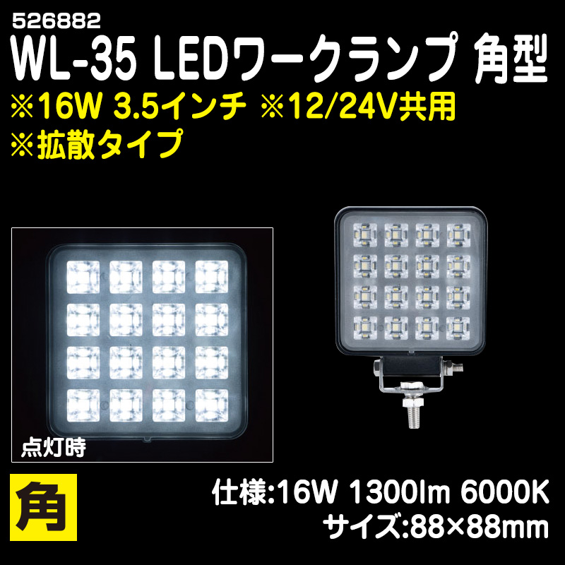 WL-35 LEDワークランプ 角型 16W 3.5インチ(12V/24V共用)