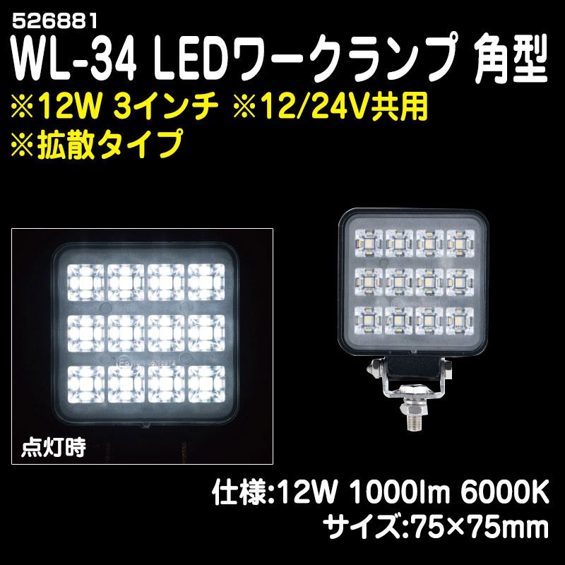 WL-34 LEDワークランプ 角型 12W 3インチ(12V/24V共用)