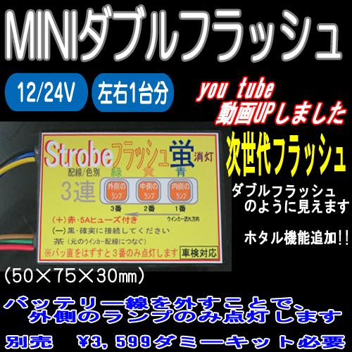 [ダイトーオリジナル ウインカーリレー]オリジナルMINI ダブルフラッシュ蛍3連リレーL/R 2個セット(12V/24V共用・ダミーキット別売)