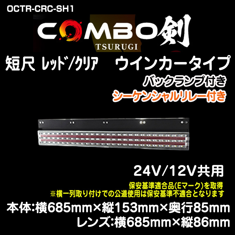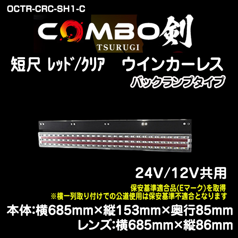 花魁 COMBO 剣 短尺 レッド/クリア 【OCTR-CRC-SH1ーC】バックランプ単体 12V/24V共用※代引き不可※地域別送料がかかる場合がございます