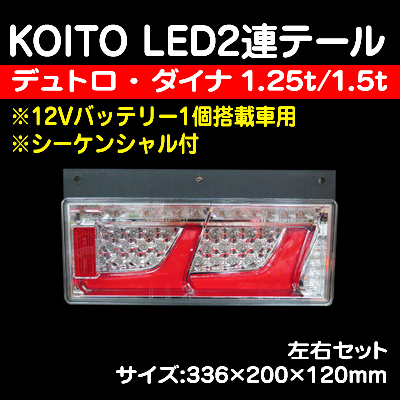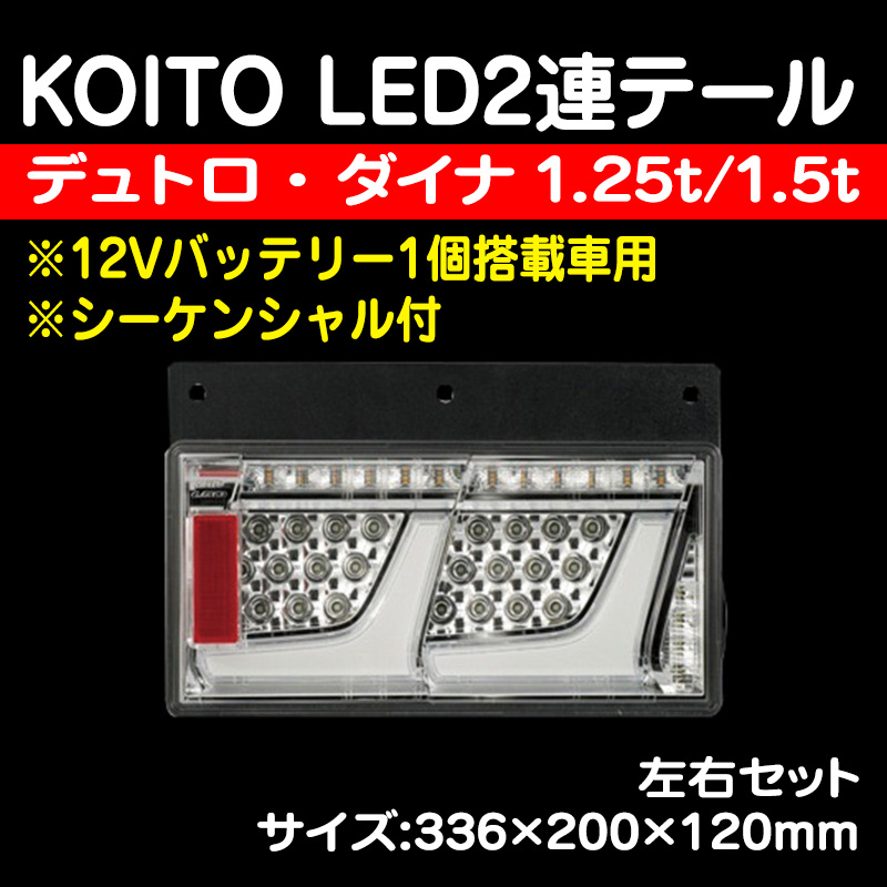 デュトロ/ダイナ1.5t-1.25t(12Vバッテリー1個搭載車)用KOITO 【シーケンシャルリレー付】LED2連テール オールクリア L/Rセット 車検対応・Eマーク