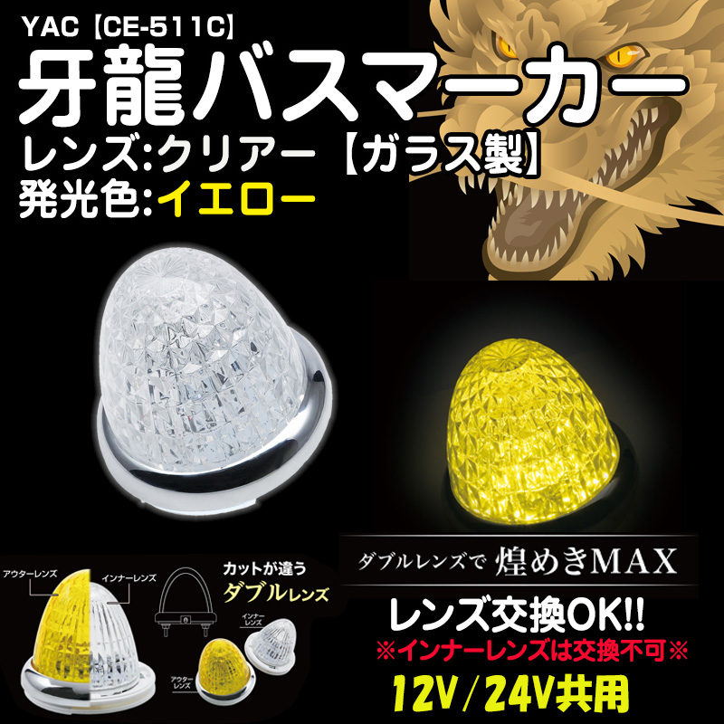 YAC牙龍バスマーカー 【ガラスクリアレンズ】イエロー12/24V共用(CE-511C)