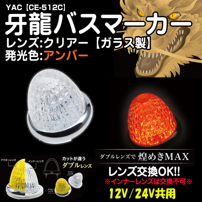 YAC牙龍バスマーカー 【ガラスクリアレンズ】アンバー12/24V共用(CE-512C)