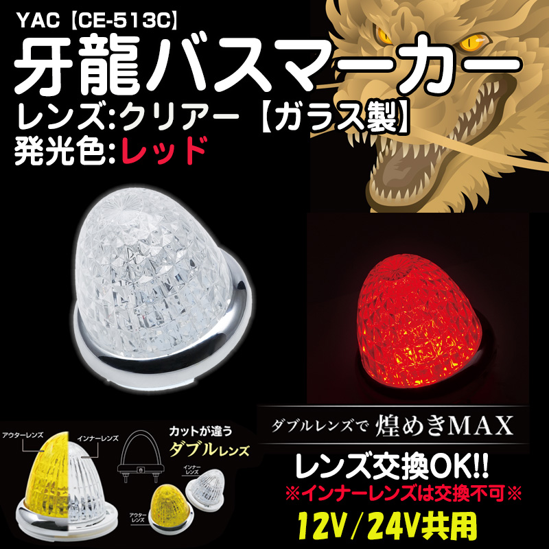 YAC牙龍バスマーカー 【ガラスクリアレンズ】レッド12/24V共用(CE-513C)