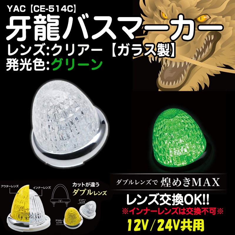 YAC牙龍バスマーカー 【ガラスクリアレンズ】グリーン12/24V共用(CE-514C)