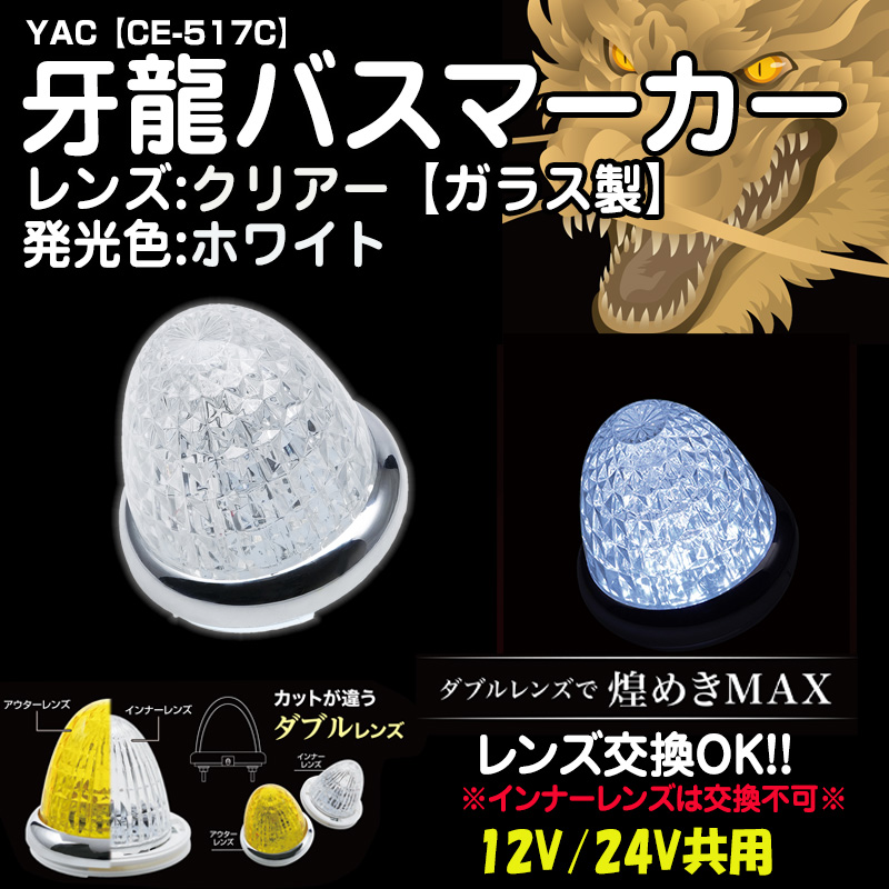 YAC牙龍バスマーカー 【ガラスクリアレンズ】ホワイト12/24V共用(CE-517C)