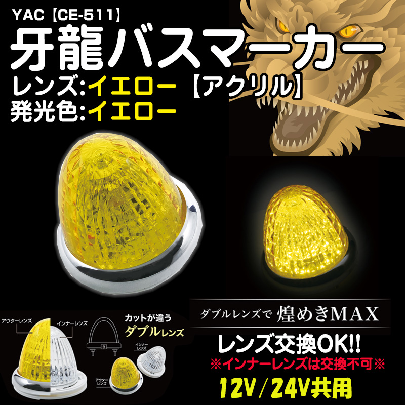 YAC牙龍バスマーカー 【アクリルレンズイエロー】イエロー12/24V共用(CE-511)