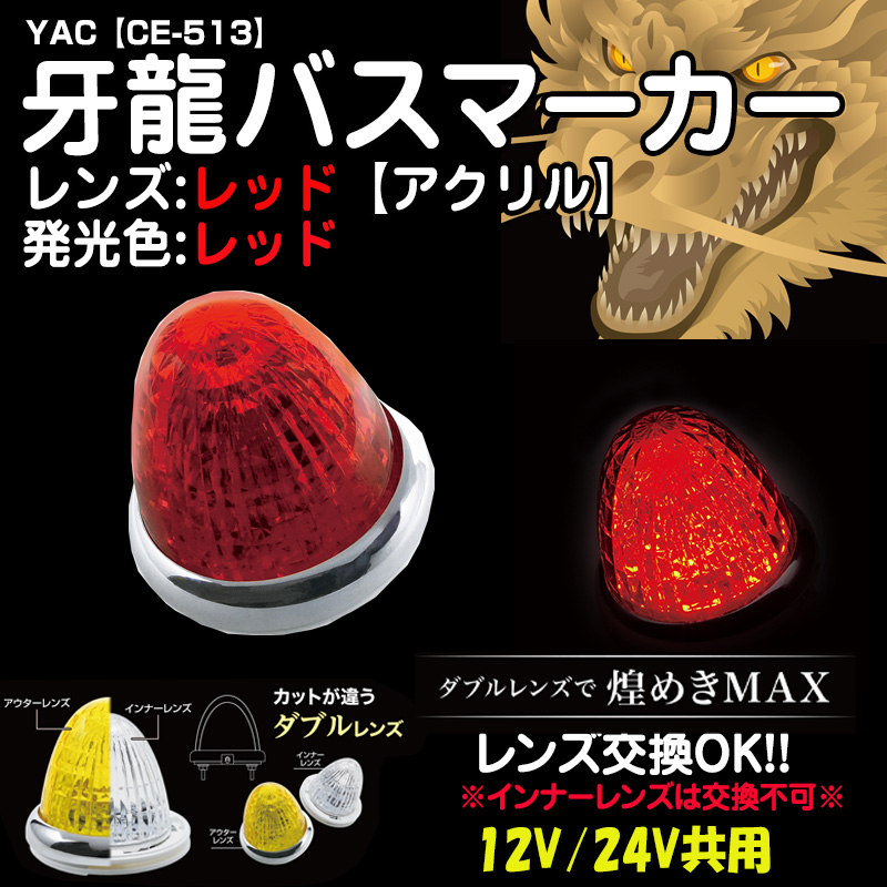 YAC牙龍バスマーカー 【アクリルレンズレッド】レッド12/24V共用(CE-513)