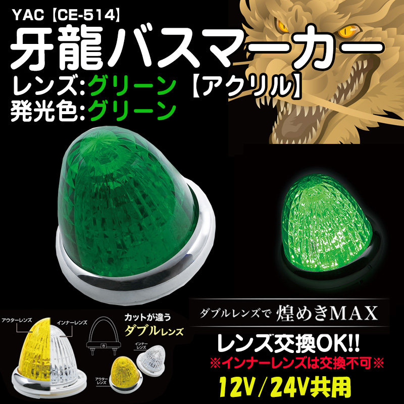 YAC牙龍バスマーカー 【アクリルレンズグリーン】グリーン12/24V共用(CE-514)