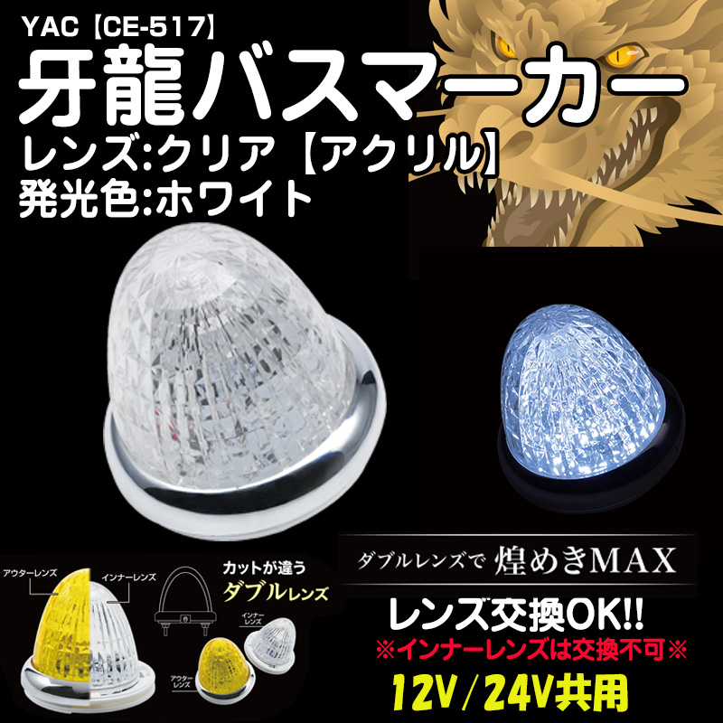 YAC牙龍バスマーカー 【アクリルレンズクリア】ホワイト12/24V共用(CE-517)