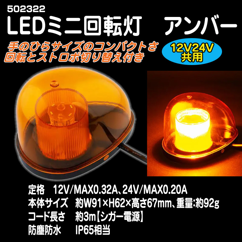LEDミニ回転灯 アンバー 12V/24V共用マグネットタイプ【502322】