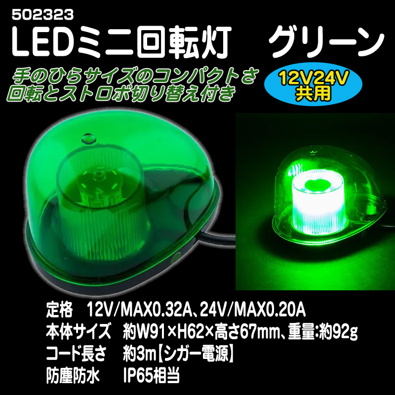 LEDミニ回転灯 グリーン 12V/24V共用マグネットタイプ【502323】