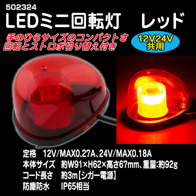LEDミニ回転灯 レッド 12V/24V共用マグネットタイプ【502324】